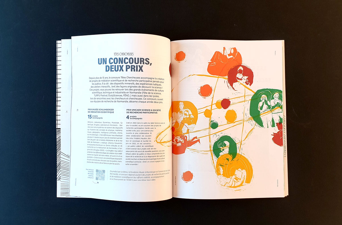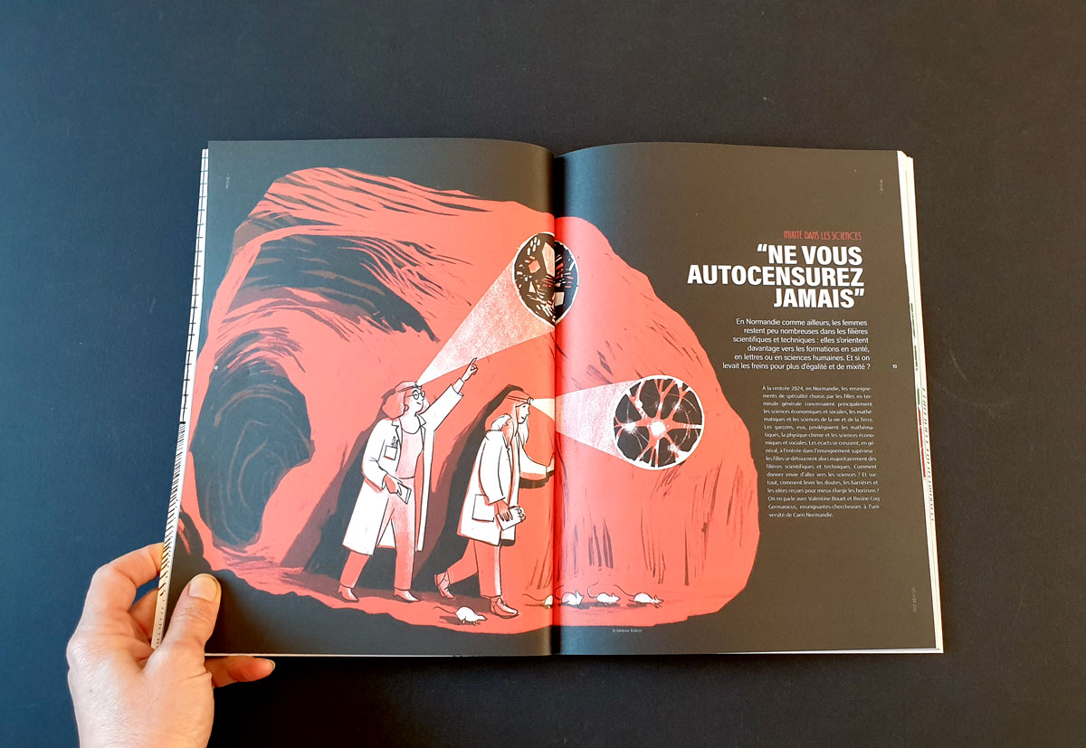 J’ai été invitée à illustrer trois des articles du hors série de la revue Prisme dédiée à la recherche scientifique éditée par l’Université de Caen.